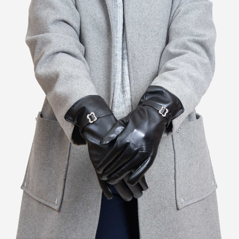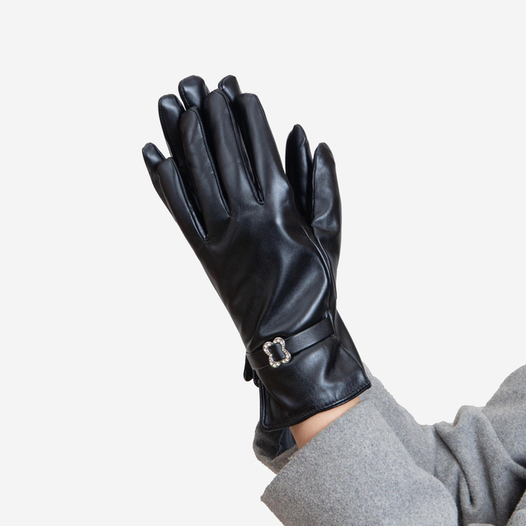Черни класически дамски ръкавици от екокожа с катарама - Аксесоари