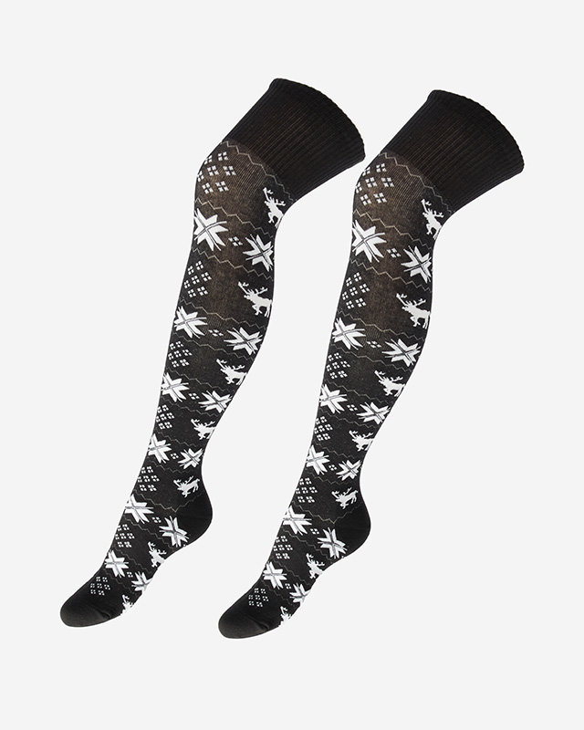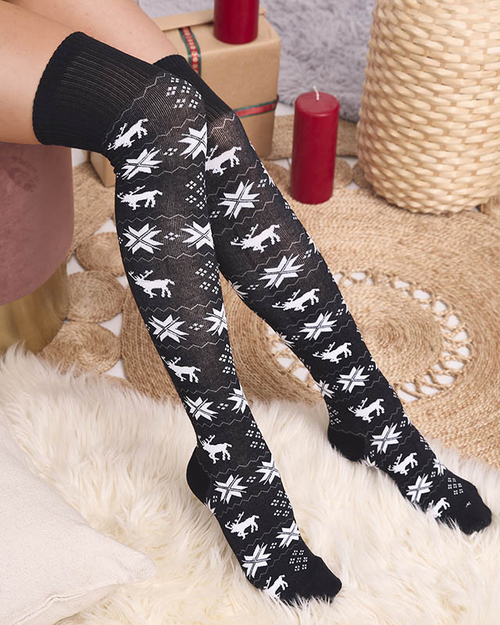 Дамски коледни чорапи над коляното в черно - Бельо