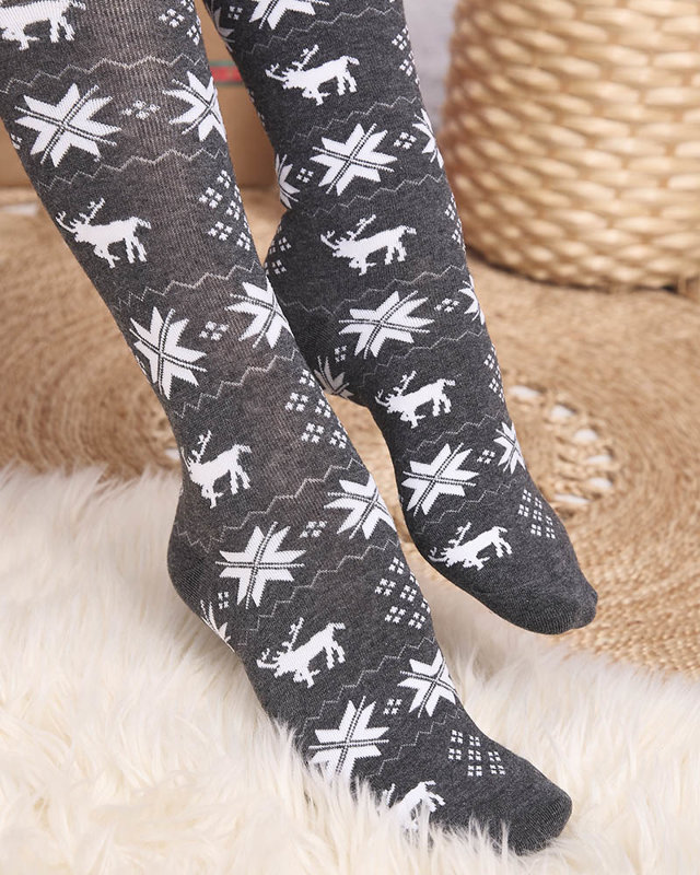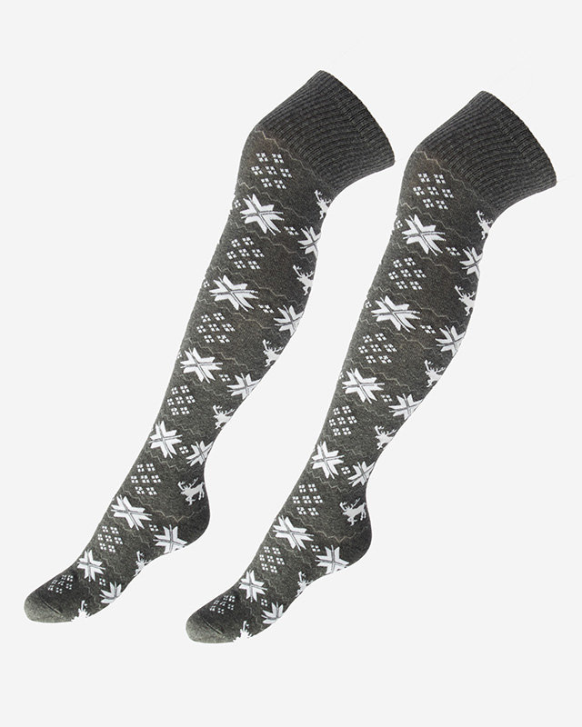 Дамски коледни чорапи над коляното в тъмно сиво- Бельо