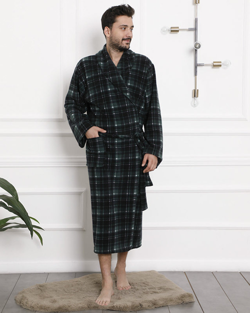 Тъмнозелен мъжки халат на каре - Облекло