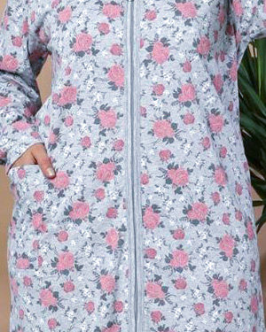 - Дамска нощница, изработена от 100% мек памук. Модел с цип и леко разкроена кройка. Има кръгло деколте, дълги ръкави и джобче. ЗАБЕЛЕЖКА: Точност на измерването (+/-) 1 см.