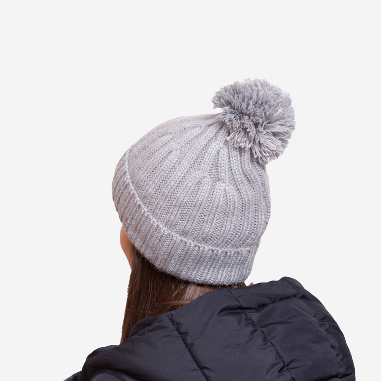 Сива дамска изолирана лъскава шапка с помпон - Аксесоари