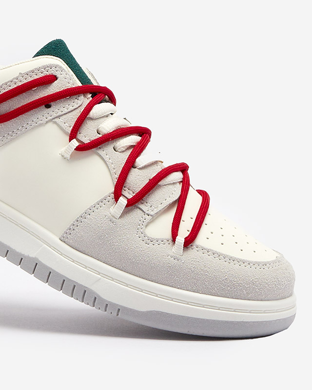 Дамски спортни маратонки в бяло и сиво с червени връзки Olierinc - Обувки