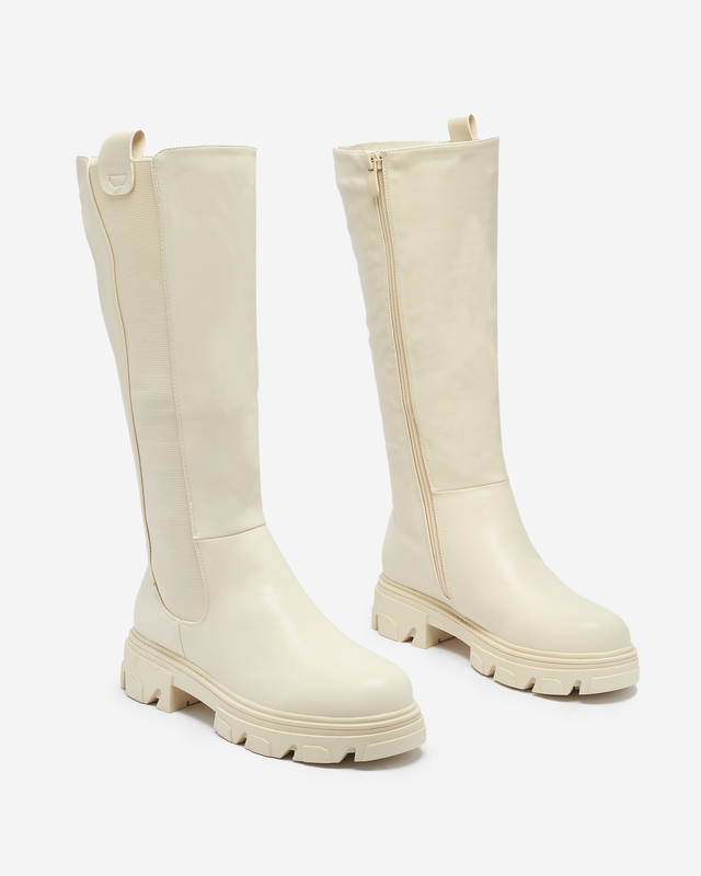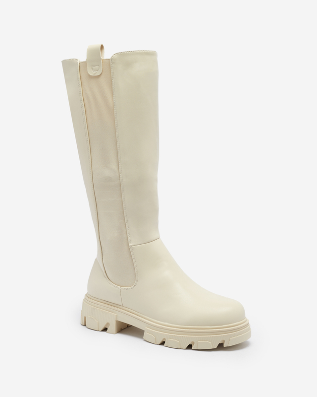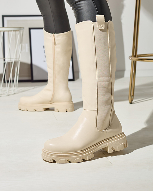 Кремави дамски ботуши до средата на прасеца Vebissa- Обувки