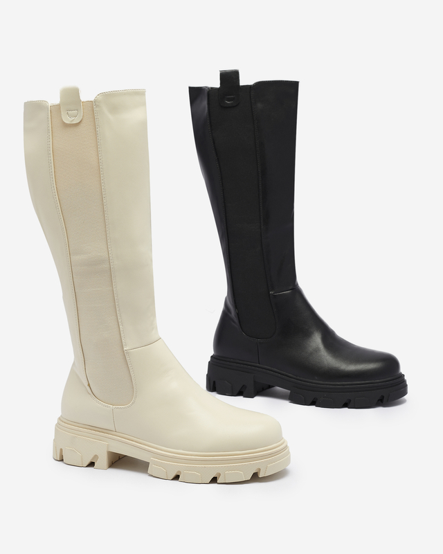 - Класически дамски ботуши на нисък ток, изработени от екологична кожа. Моделът се закопчава с цип, няма затопляне отвътре, еластична вложка отстрани. КРЕМАВИ ДАМСКИ БОТУШИ БОТУШИ БЕЗ ИЗОЛАЦИЯ VEBISSA