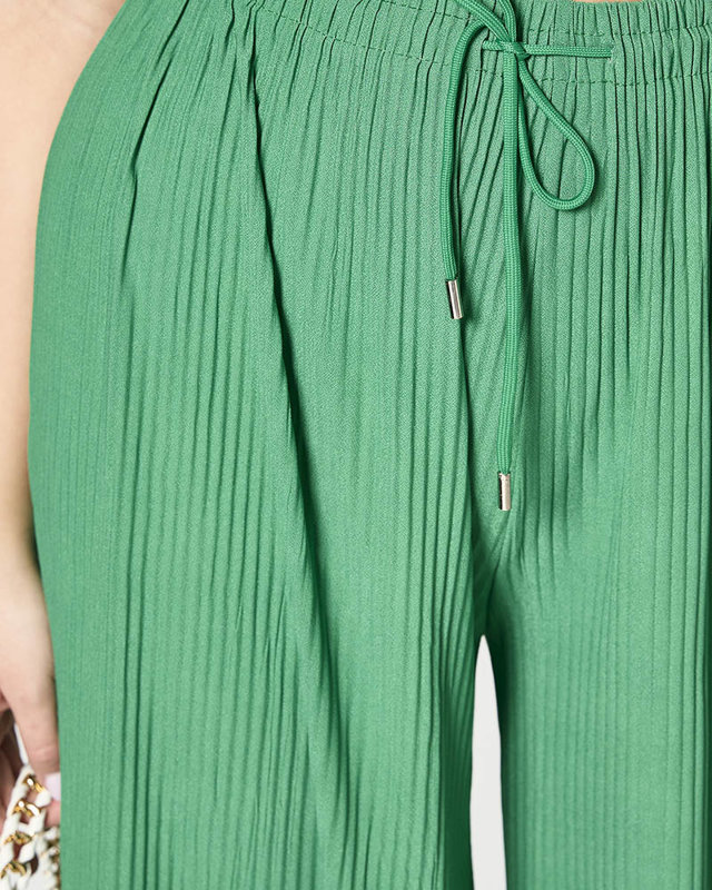 Дамски широки плисирани панталони палацо в зелено - Облекло
