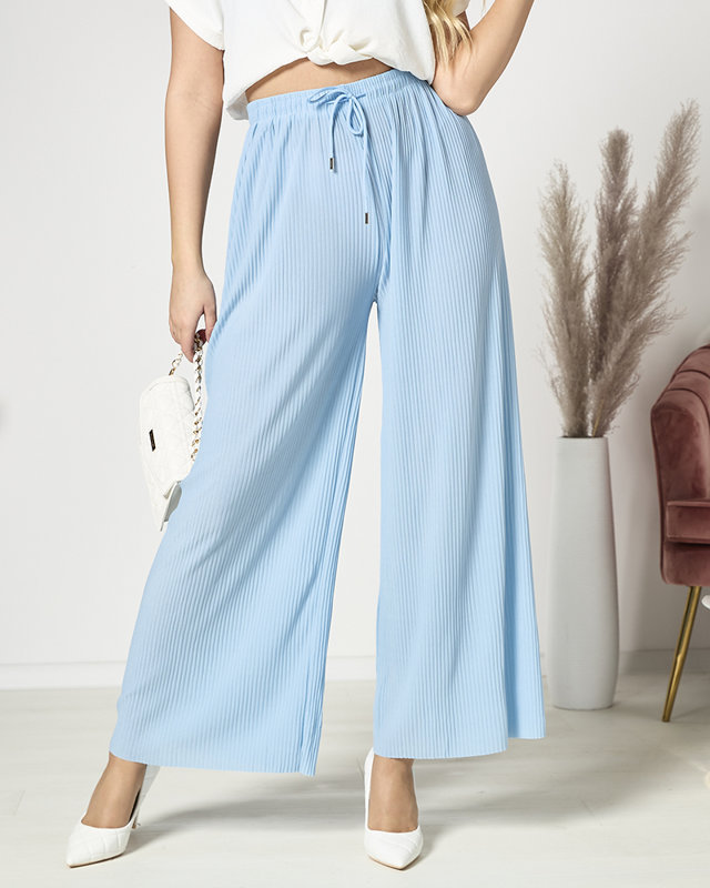 Дамски широки плисирани панталони палацо в синьо - Облекло