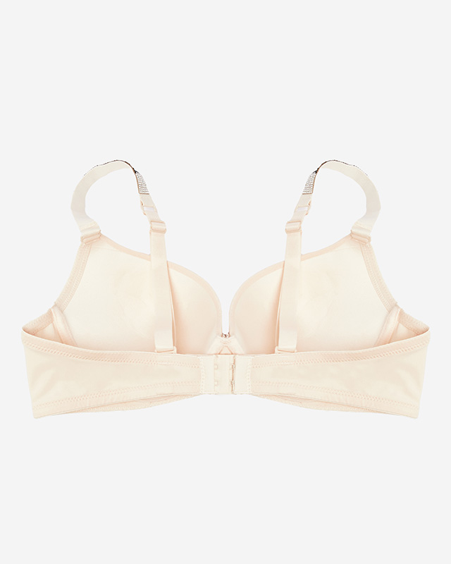 Бежов едноцветен сутиен с подплънки и украсени презрамки - Бельо