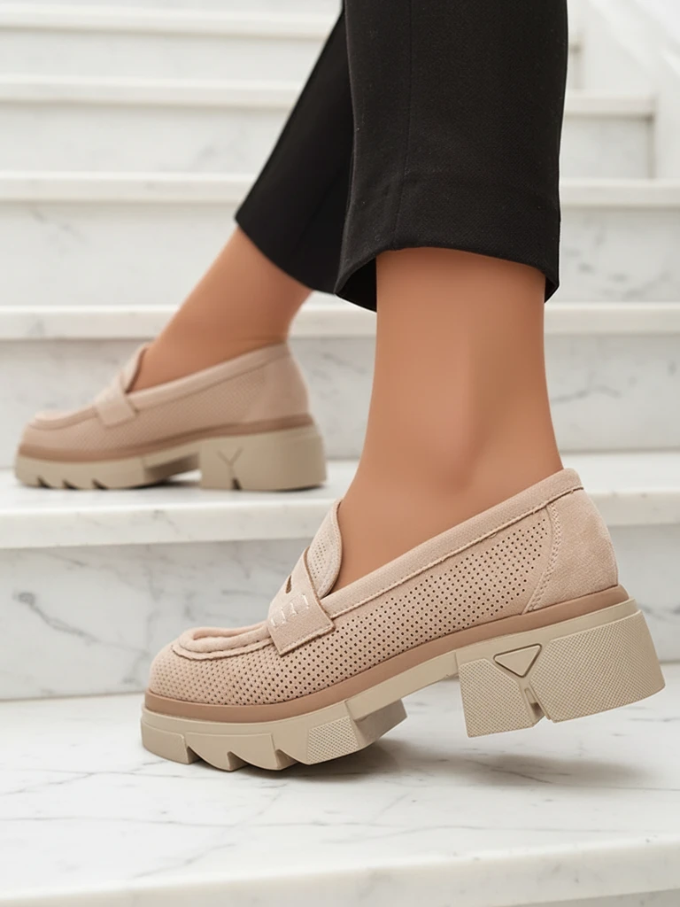 Бежови дамски ажурни мокасини с масивна подметка Ejina - Обувки
