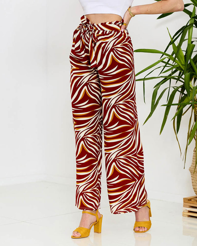 • Дамски панталон с шарка. Моделът е изработен от лека и ефирна материя, има ластик и връзки за подчертаване на талията. Идеалната основа за стилни тоалети за пролетта! ЗАБЕЛЕЖКА: Точност на измерването (+/-) 1 см.