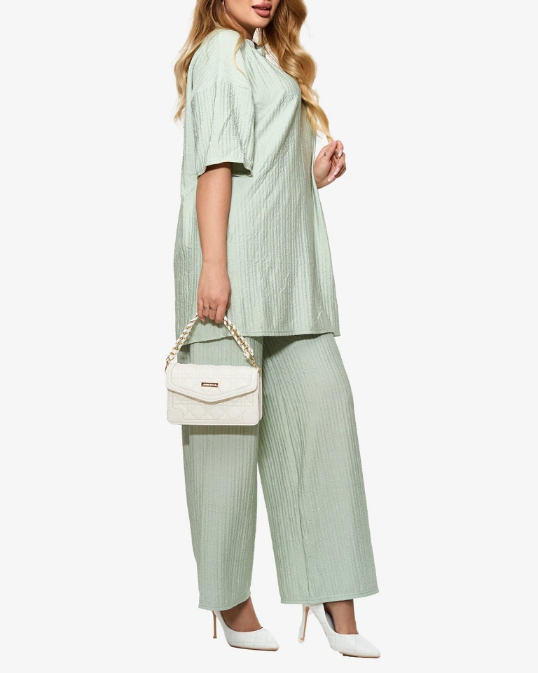 Дамски комплект с ребра в цвят мента- Облекло