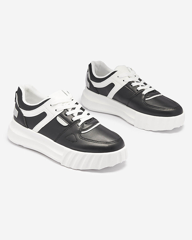 Черни дамски спортни обувки от екокожа с бели вложки Netiris - Обувки