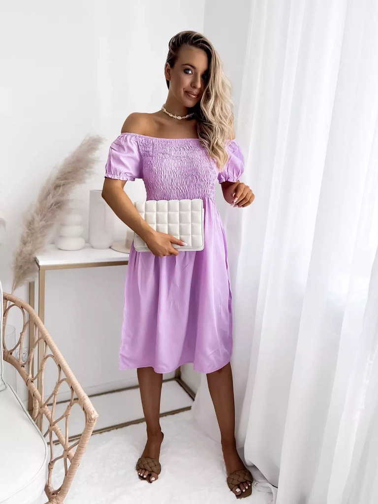 Лилава дамска мини рокля a'la hiszpanka- Облекло