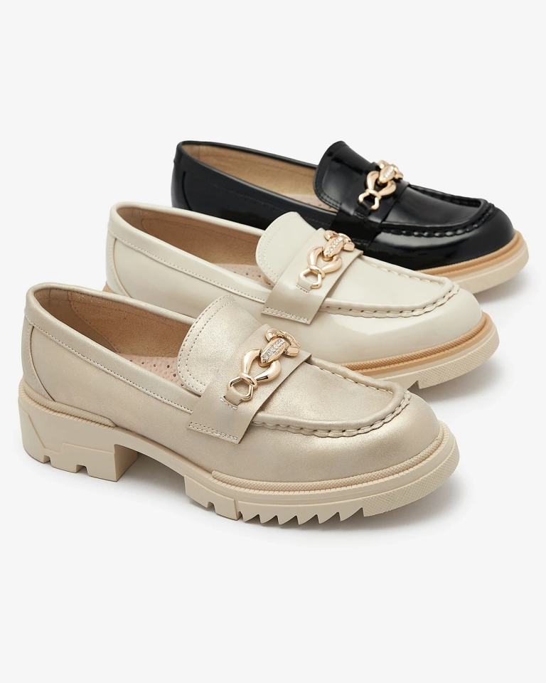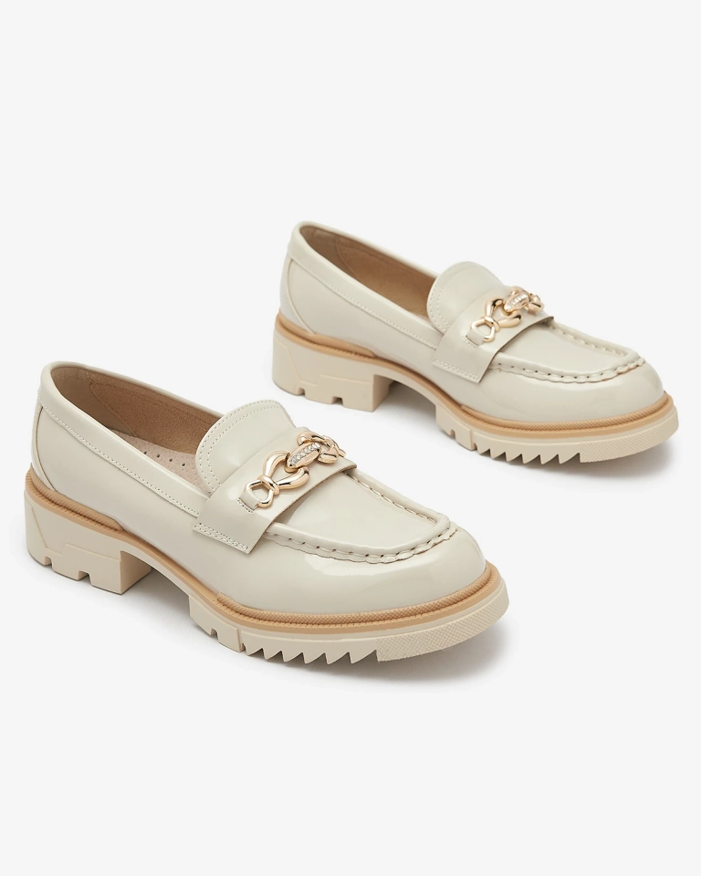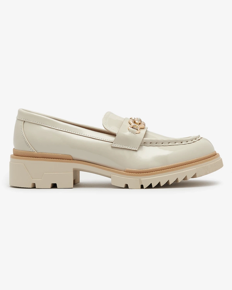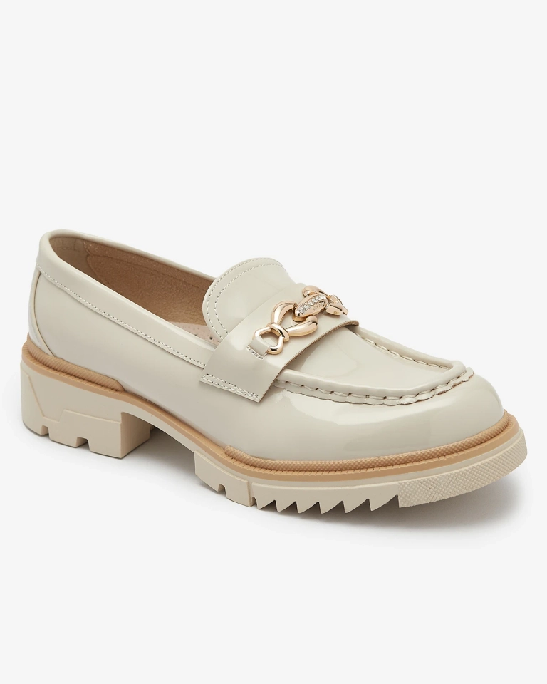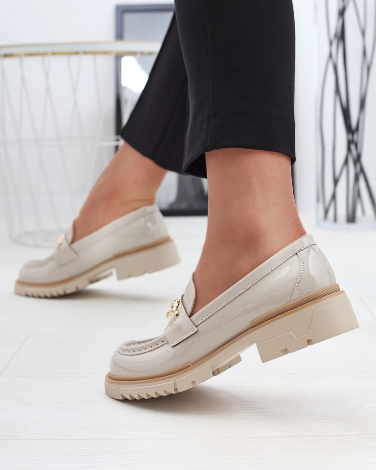 Бежови лакирани дамски мокасини с верижка Sotella - Обувки