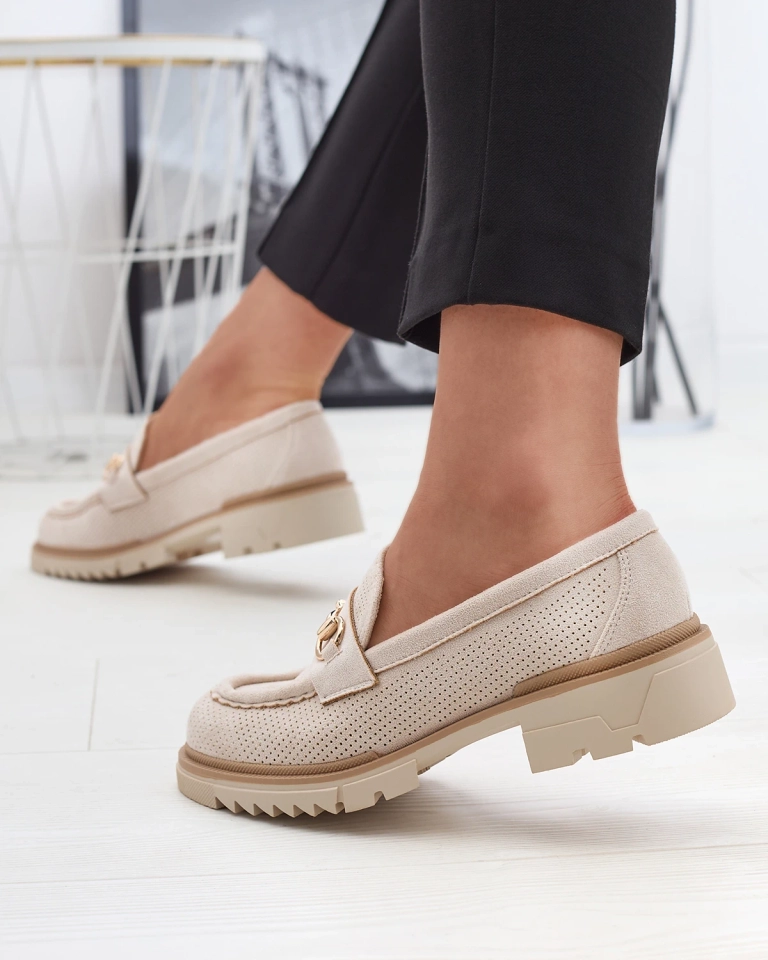 Кремави ажурни дамски мокасини с верижка Imerila - Обувки