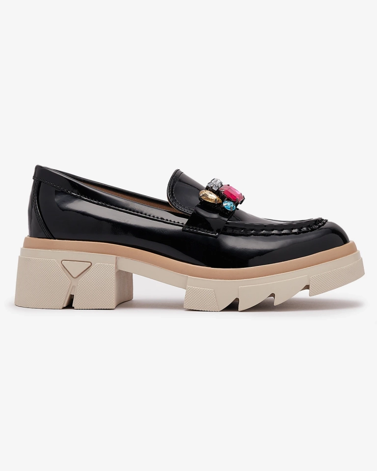 Лакирани черни мокасини с цветни камъни Sarix - Обувки