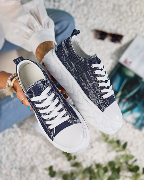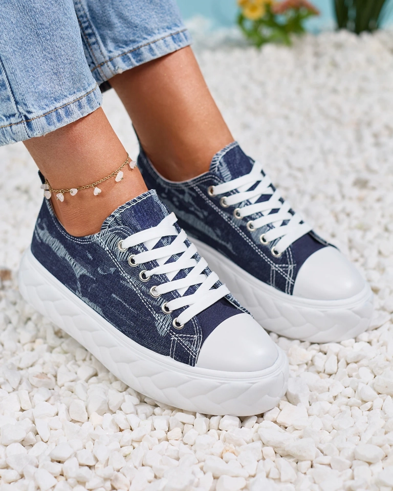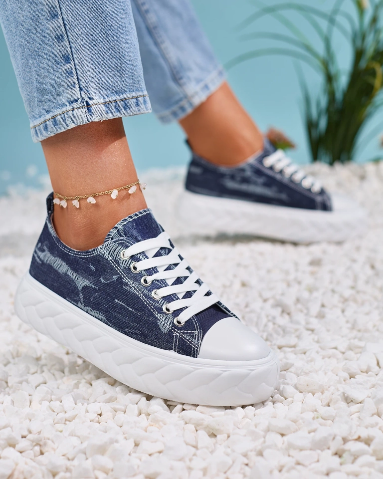 Royalfashion Дамски дънкови маратонки в морско синьо с протрити крачоли Nerolera