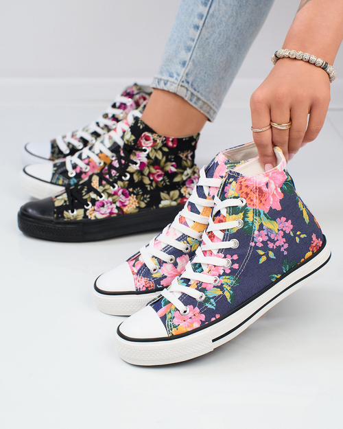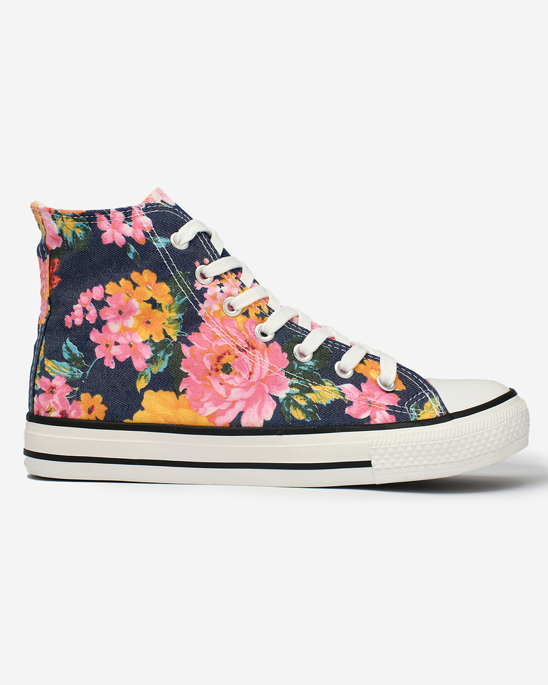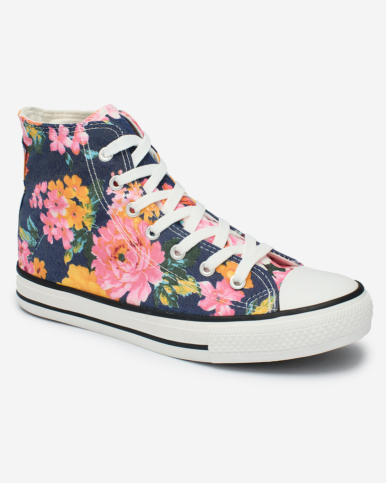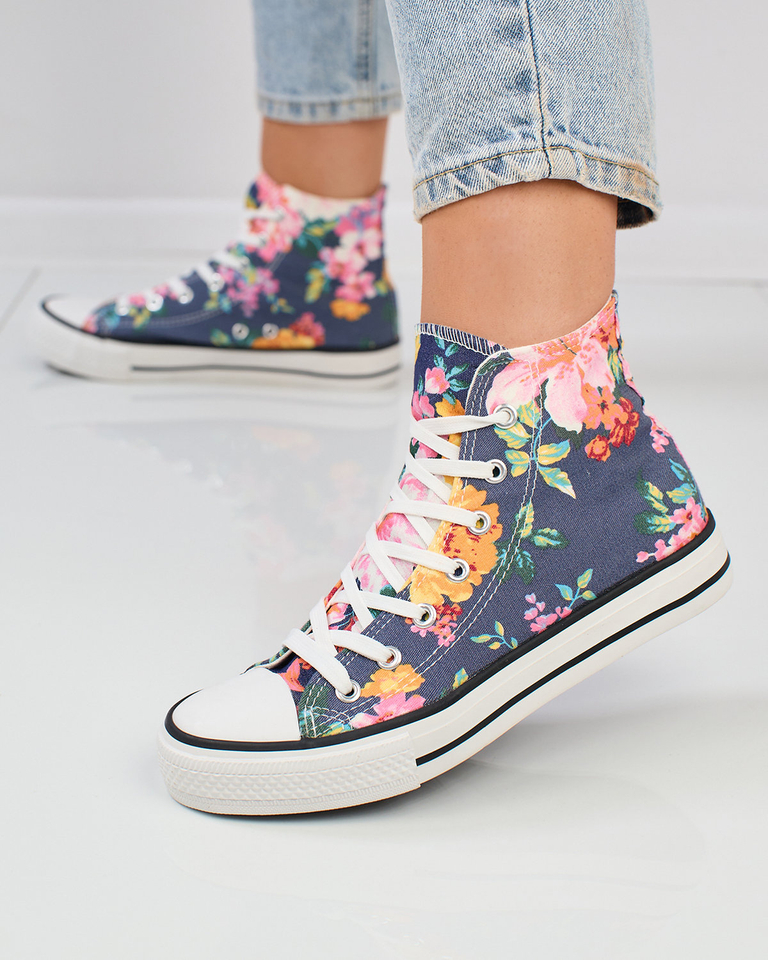 - Дамски високи маратонки от текстилен материал на гумена подметка. Завързани с дантела, те осигуряват перфектно прилягане. Декорирани с флорален принт, те придават чар и летен характер. Перфектни за ежедневния стайлинг!