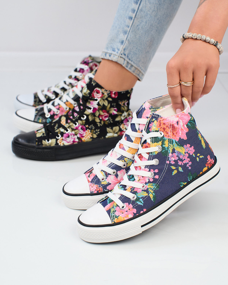 • Дамски високи маратонки от текстилен материал на гумена подметка. Завързани с дантела, те осигуряват перфектно прилягане. Декорирани с флорален принт, те придават чар и летен характер. Перфектни за ежедневния стайлинг!