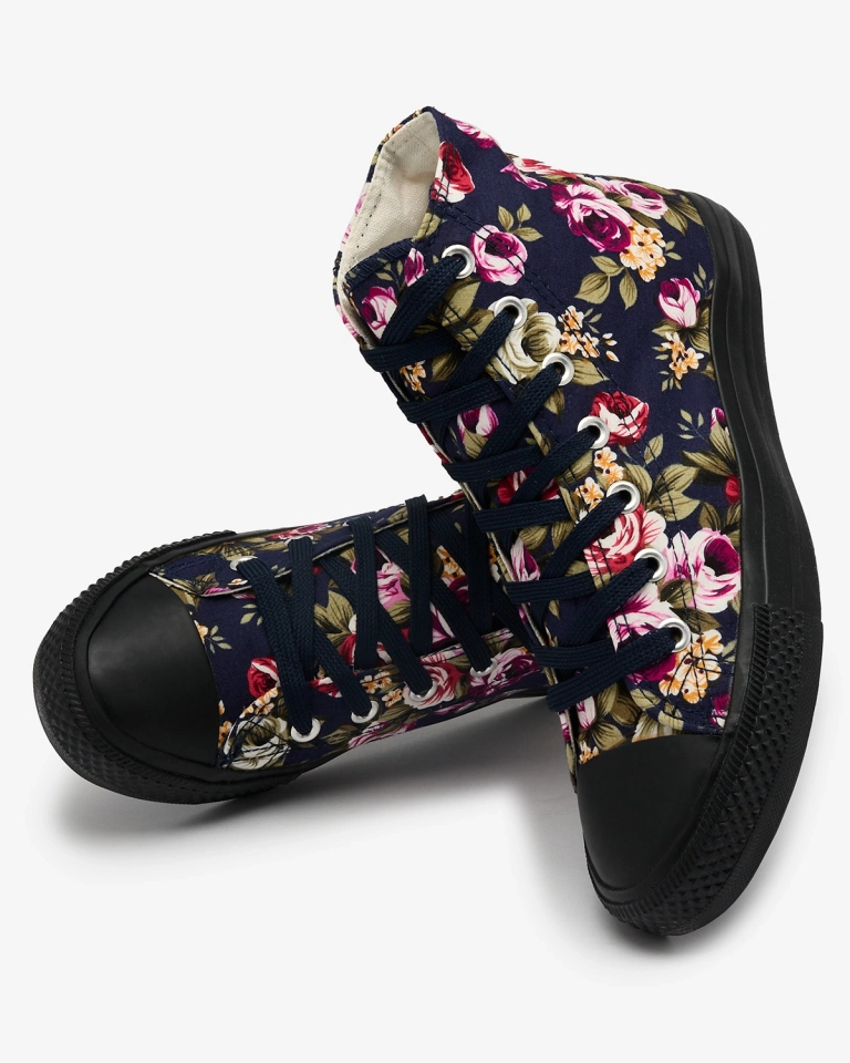- Модерни дамски високи маратонки от плат с гумена подметка. С връзки и украсени с флорален принт, който придава чар на обувките. Удобни и стилни, идеални за ежедневен стил.