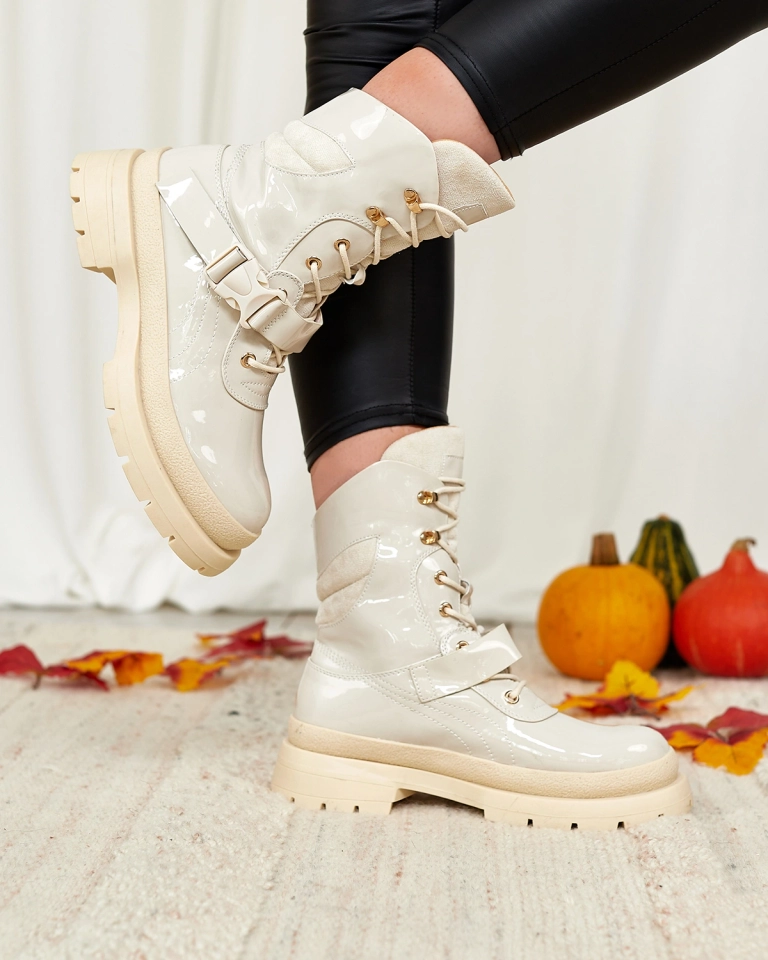 Royalfashion Дамски ботуши с лак в бежово Setogy