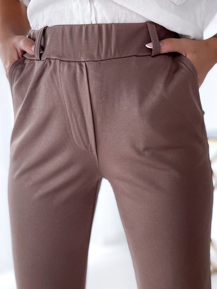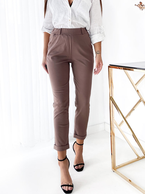 - Стилни дамски панталони тип "трегери". Продуктът е с широка еластична талия и два джоба за приплъзване. Идеална основа за много летни тоалети! Произведено в Полша. ЗАБЕЛЕЖКА: Точност на измерването (+/-) 1 см.