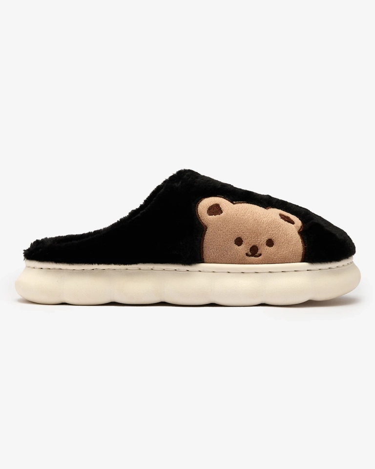 Royalfashion Damskie futrzane kapcie z misiem w kolorze czarnym Fetemes