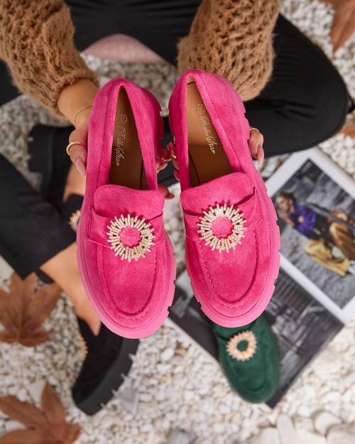 Royalfashion Фуксия Дамски мокасини от еко велур Likoki