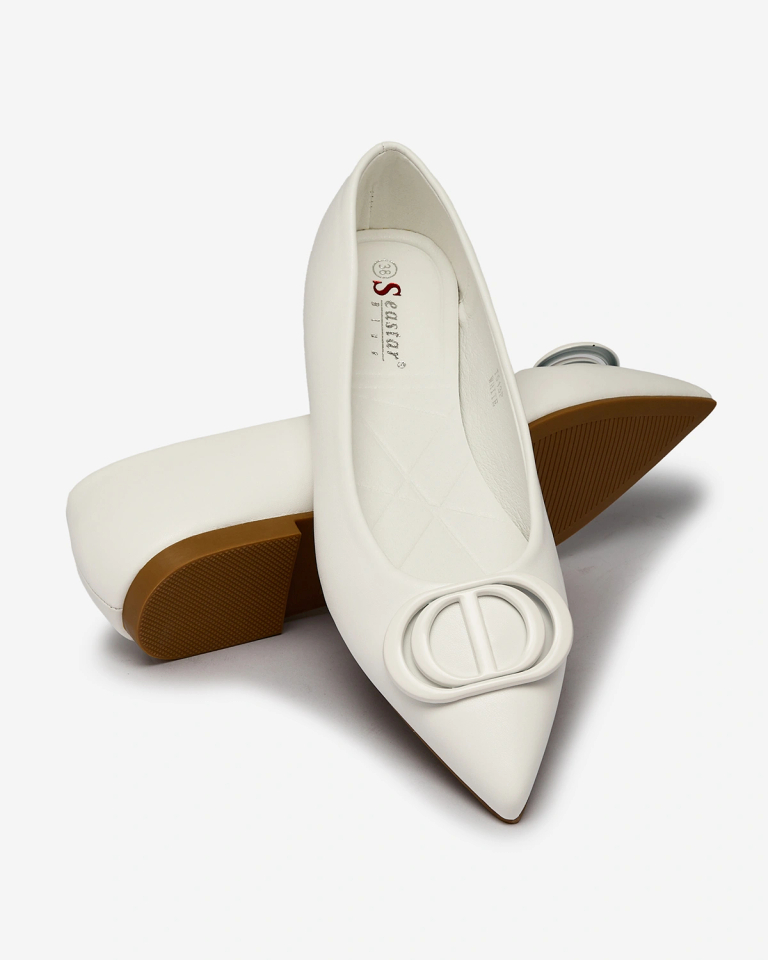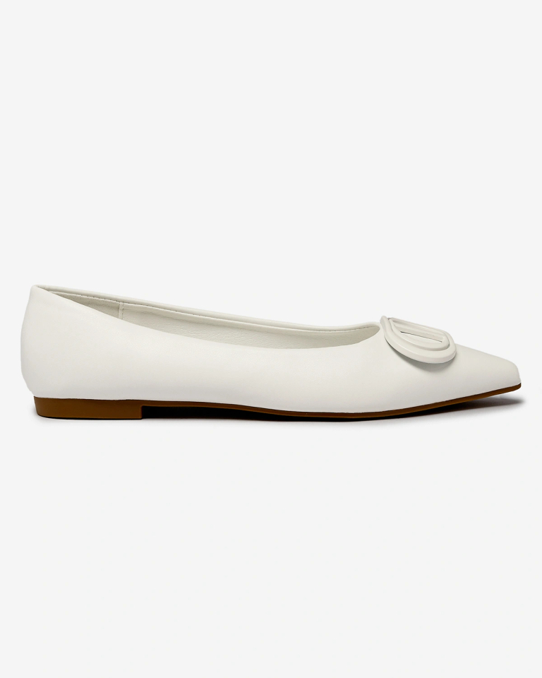 Royalfashion Бели дамски балерини със заострен връх и украса на носа Manixy