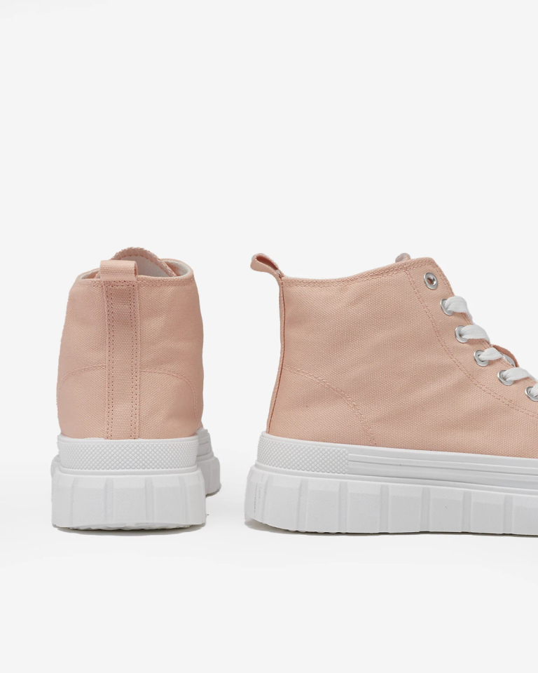 - Неостаряващи дамски високи маратонки, изработени от текстилен материал. Моделът е на масивна платформа. Горната част е с дантела. Те ще се съчетаят чудесно с ежедневния стайлинг!