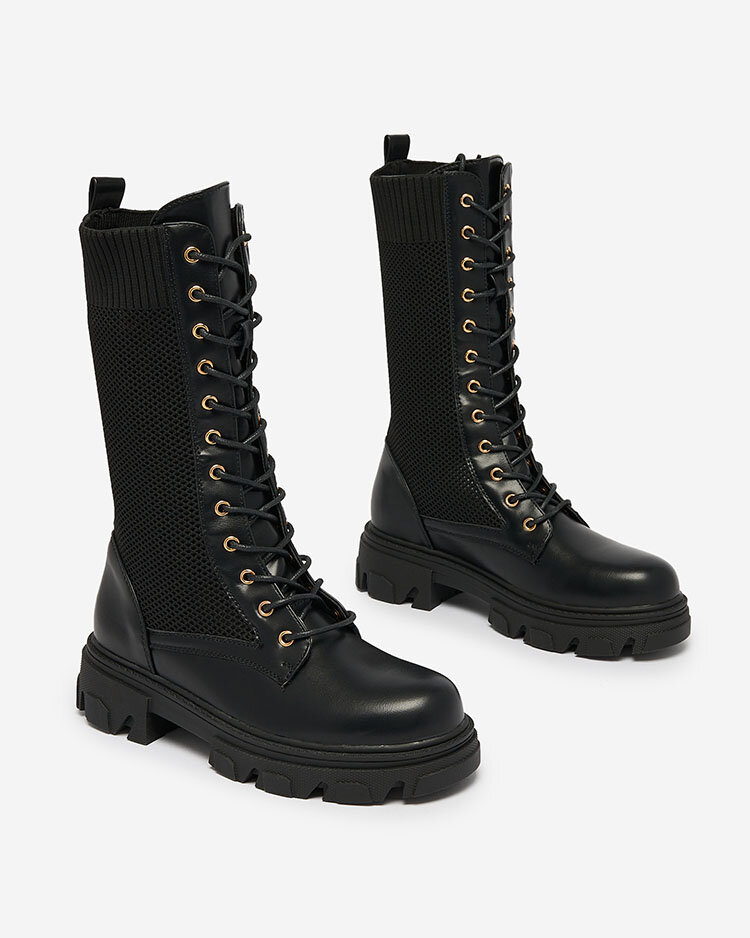 Royalfashion Ажурни черни дамски ботуши с плосък ток Kaliffo