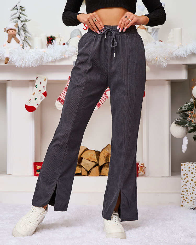 Royalfashion Тъмно сив дамски панталон от велур