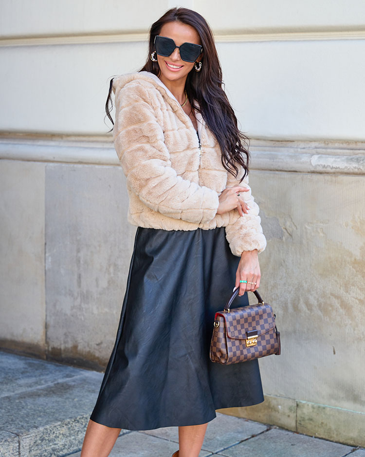Royalfashion Двустранно дамско яке с кожа в бежово