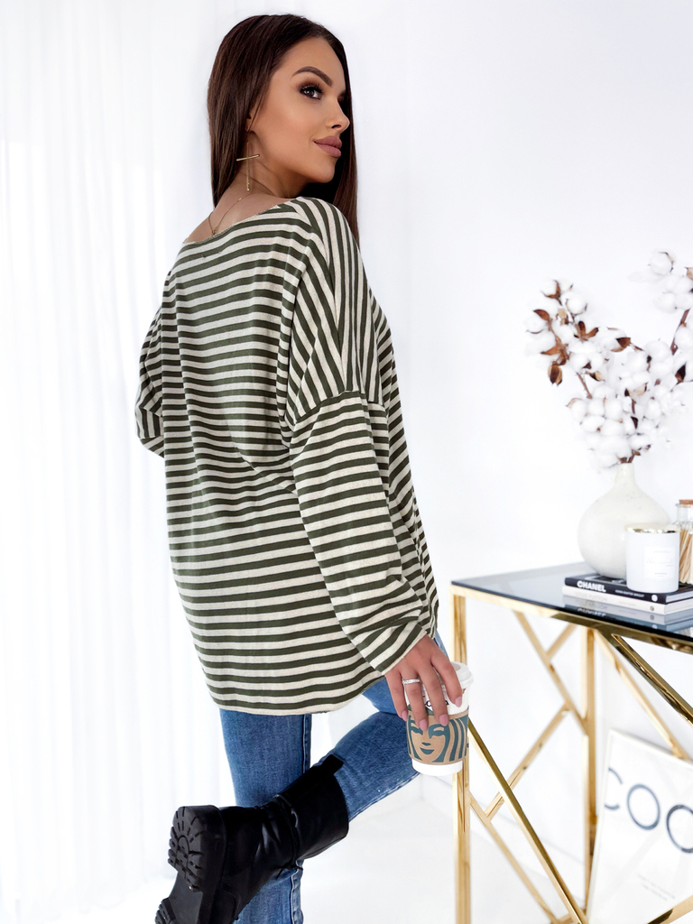 - Красива дамска раирана блуза. Модел със сърцевидно деколте, изработен от лека, ефирна материя. Незаменим елемент от вашия гардероб! ЗАБЕЛЕЖКА: точност на измерване (+/-) 1 см. Размерите са измерени в плосък ръст.