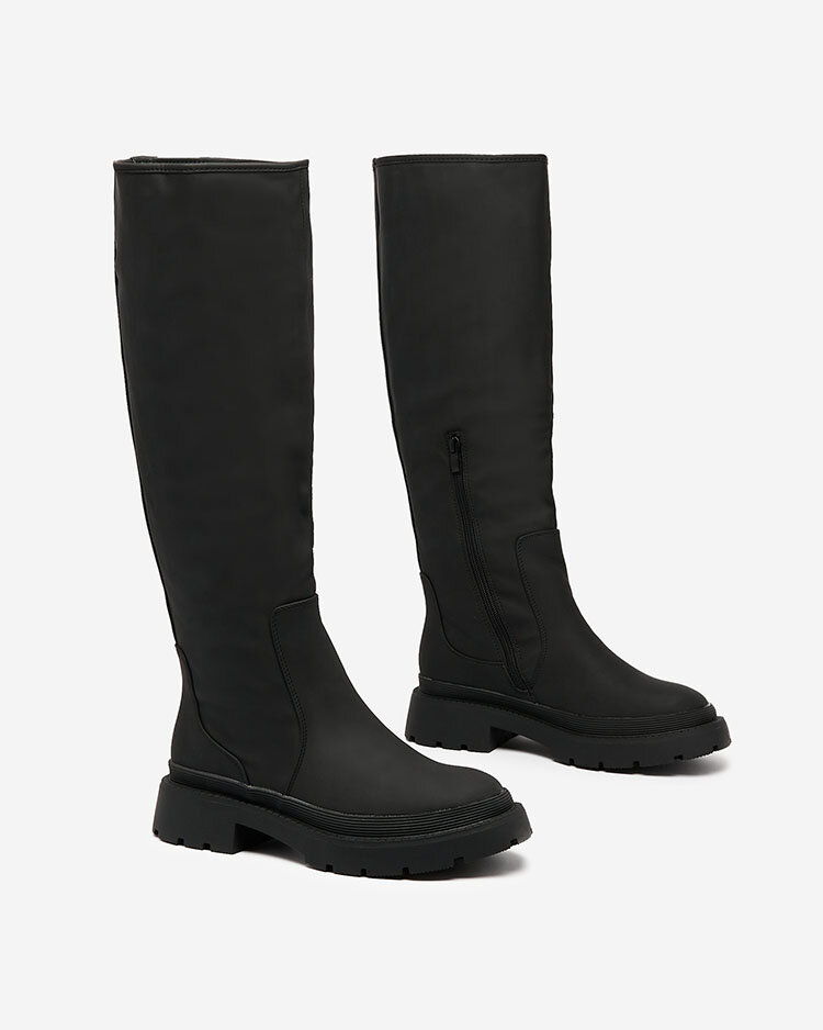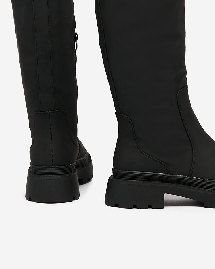 Royalfashion Матови черни дамски ботуши до коляното Ikemis
