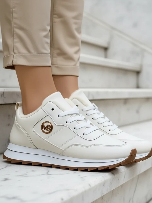Открийте несравним комфорт и стил с дамските маратонки Royalfashion Alba – идеалният избор за всеки сезон, от пролетта до есента. Тези топли бели обувки са квинтесенцията на градския шик, съчетаващи модерен дизайн с практични решения, които всяка жена, която цени комфорта и съзнателния избор, ще оцени. Материали и технология на производство: Маратонките Royalfashion Alba са изработени от висококачествен екологичен набук, който е вид екологична кожа. Този материал се характеризира с мекота, приятна на допир текстура и повишена устойчивост на ежедневна употреба, като същевременно е екологичен. Външният слой от еко кожа осигурява издръжливост и лесна поддръжка. Вътрешността на обувката крие истинска изненада – мека, вълнена стелка, която в комбинация с топлоизолация гарантира оптимален топлинен комфорт. Благодарение на това краката ви ще останат топли в по-хладните дни на пролетта и есента и в същото време ще дишат. Солидната, плоска подметка с височина 4 см, изработена от издръжлива пластмаса, осигурява отлично омекотяване и стабилност при всяка стъпка, а кръглият й връх гарантира свобода на пръстите. Закопчаването с връзки позволява перфектно прилягане на обувката към крака. Уникални предимства и комфорт при използване: Носенето на маратонки Royalfashion Alba е чисто удоволствие. Вълнената стелка обгръща крака, осигурявайки усещане за мекота и топлина, което е безценно по време на дълги разходки или интензивен ден. Плоската подметка с височина 4 см не само добавя няколко сантиметра височина, но преди всичко равномерно разпределя тежестта на тялото, минимизирайки умората на краката и гръбначния стълб. Топлоизолацията ги прави идеални обувки за променливо време, предпазвайки от студ, но не прегрявайки крака. Техният класически бял цвят и минималистичен дизайн с фино лого на Royalfashion ги правят изключително универсални и лесни за вписване в различни стилове. Съвети за стилизиране – Създайте своя външен вид: 1. Ежедневен шик: Комбинирайте бели маратонки Alba с дънки mom fit или прави тръби, свободен пуловер в пастелен нюанс и дълъг тренчкот. Това е идеалният комплект за кафе с приятелка или пазаруване през уикенда. 2. Спортна елегантност: Комбинирайте ги с елегантни панталони чино (както на снимката) или панталони тип джогинг от плат, бяла риза и oversized сако. Добавете минималистични бижута, за да подчертаете изискания характер на стила. 3. Градски вайб: Носете ги с плисирана миди пола или дънкова пола, обикновена тениска и кожено яке. Тази визия е подходяща за разходка из града или вечерно излизане. Грижа и поддръжка: За да може вашите маратонки Royalfashion Alba да ви служат възможно най-дълго, не забравяйте за правилната грижа. Почиствайте ги редовно с влажна кърпа, като отстранявате замърсяванията. За почистване на екологичен набук използвайте специализирани препарати, предназначени за този тип материали, които няма да увредят структурата му. Избягвайте използването на агресивни химикали. След всяка употреба, особено в дъждовни дни, оставете обувките да изсъхнат на проветриво място, далеч от директни източници на топлина. За да запазите формата им, можете да ги напълните с хартия. Тенденции, които ще харесате: Белите маратонки са абсолютен must-have във всеки гардероб и тяхната популярност не намалява. Моделът Alba се вписва в тенденцията athleisure, съчетаваща спортен комфор