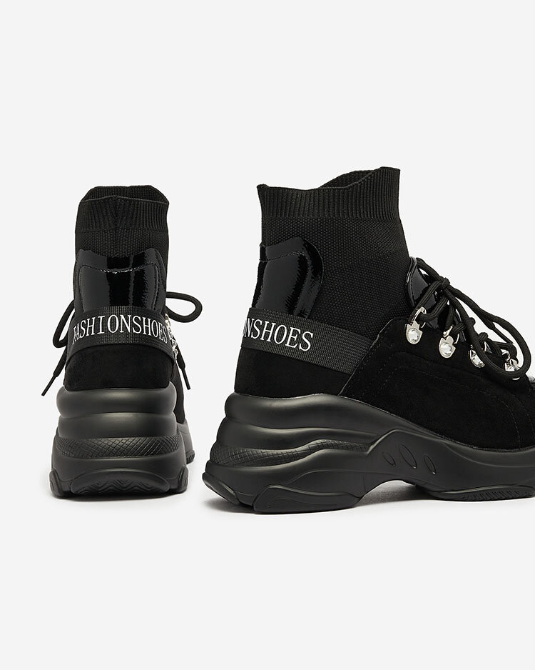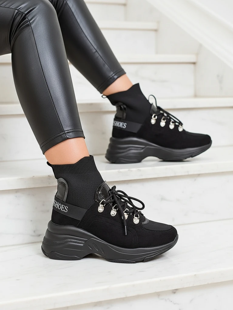 • Дамски изолирани спортни маратонки с по-дебела подметка. Горна част с дантела, изработена от комбинация от екологичен велур, лачена кожа и плат. Мека кожа от вътрешната страна. Супер допълнение към зимните ви ежедневни тоалети!