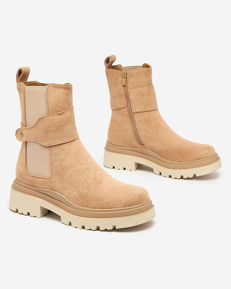 Royalfashion Светлокафяви дамски ботуши с декоративна каишка Doasa