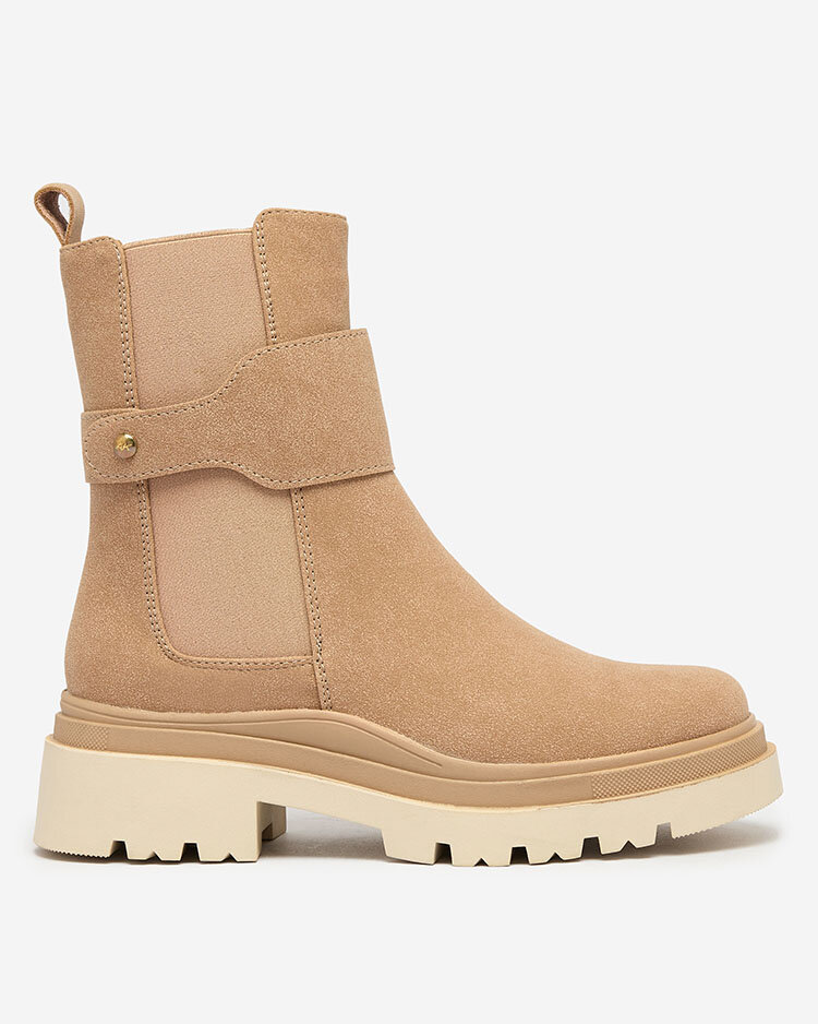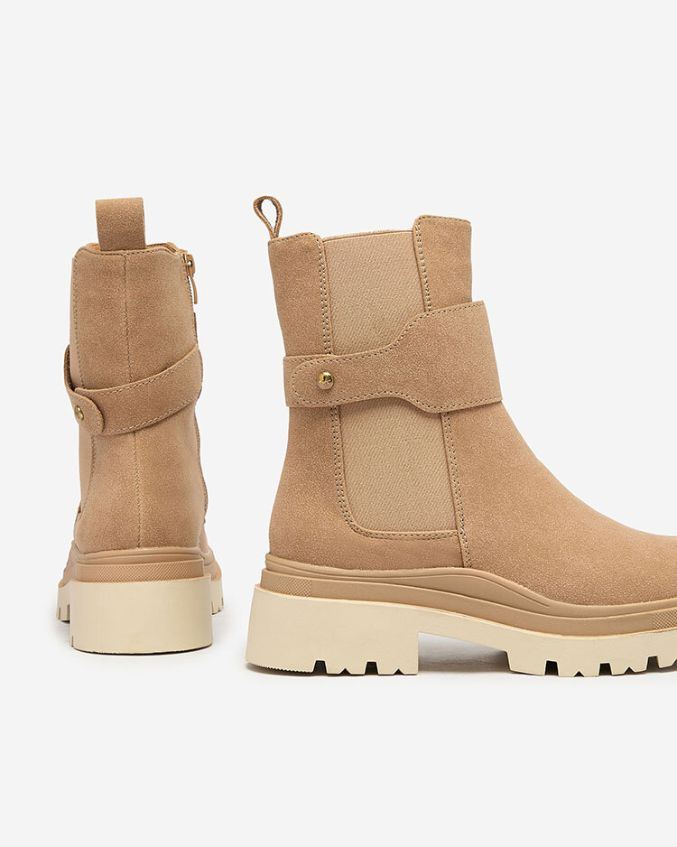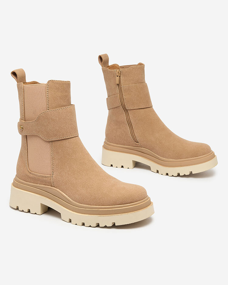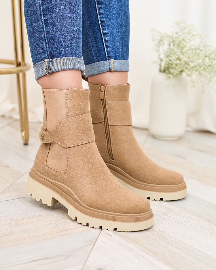 Royalfashion Бежови дамски ботуши с декоративна каишка Doasa
