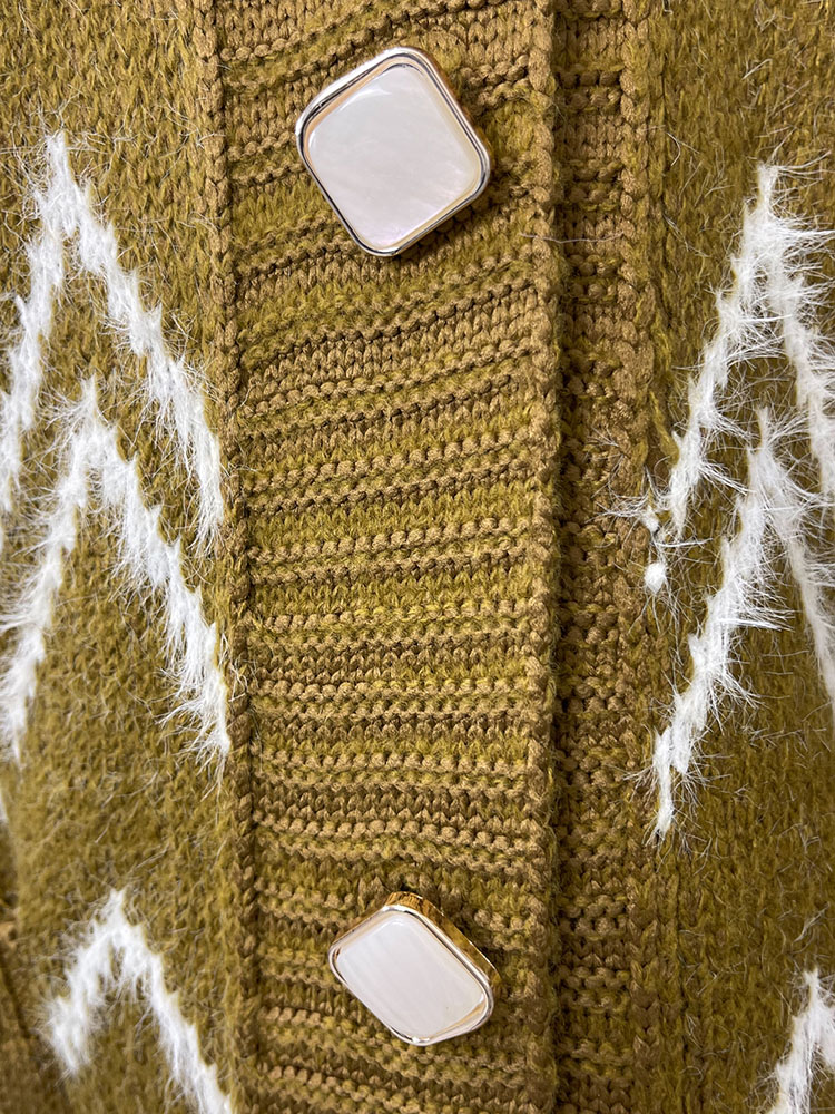 - Красив дамски пуловер за спане, изработен от шарена трикотажна материя. Пуловер с копчета и два джоба. Задължителна част от гардероба ви, за да допълни есенния стайлинг!