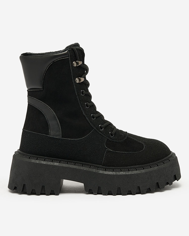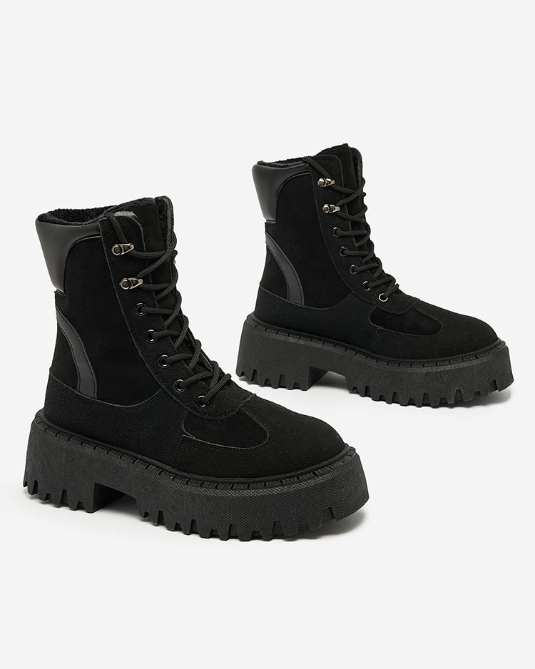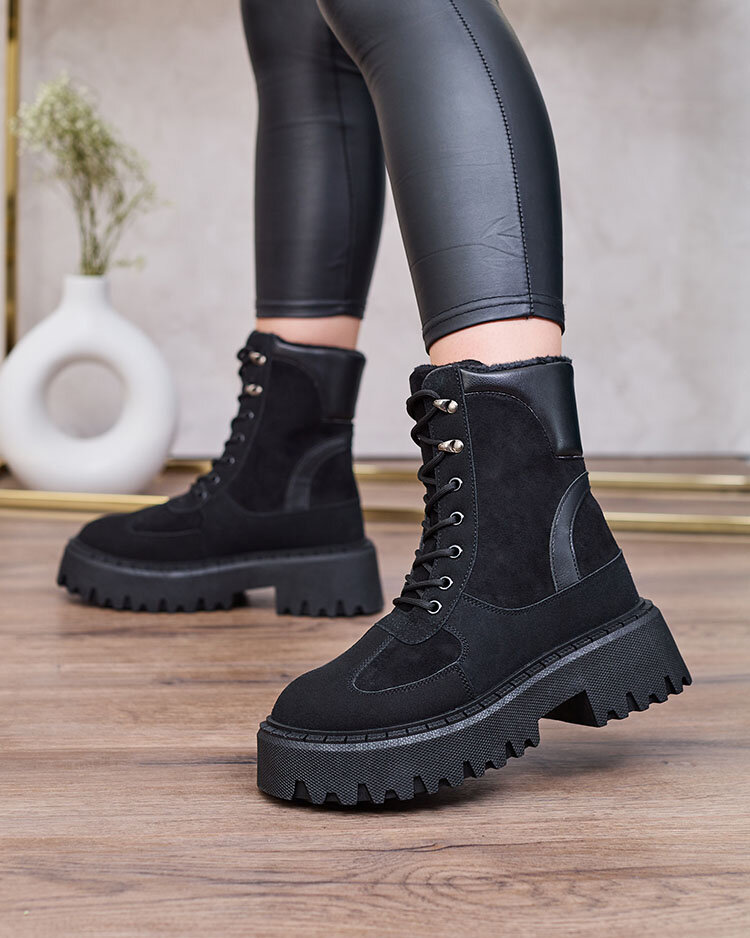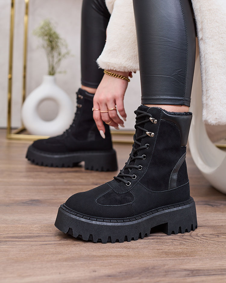 • Стилни ботуши от екологичен набук. Ботушите са с връзки, имат по-дебела гумена подметка и център, изпълнен с мека кожа. Перфектни за есенните тоалети!