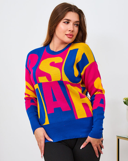Royalfashion Дамски пуловер с букви в кафяво и синьо