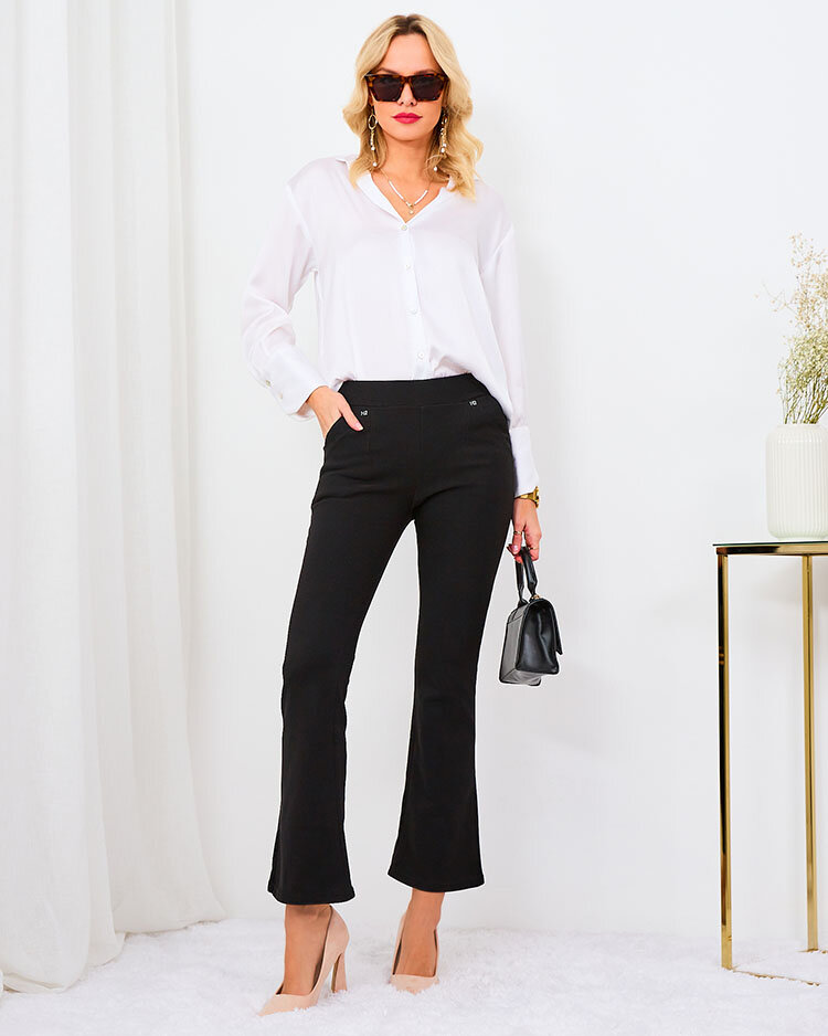 Royalfashion Черни дамски клинове от екокожа a'la bells