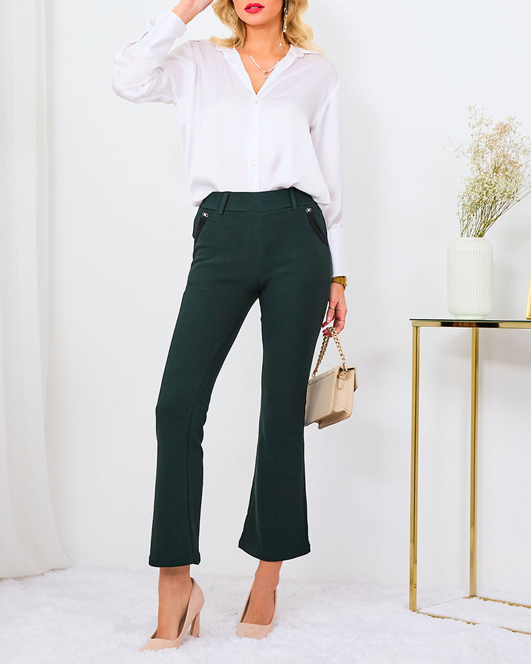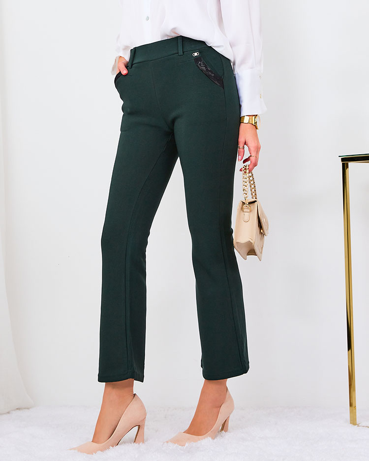 Royalfashion Тъмнозелени дамски панталони от плат a'la bells