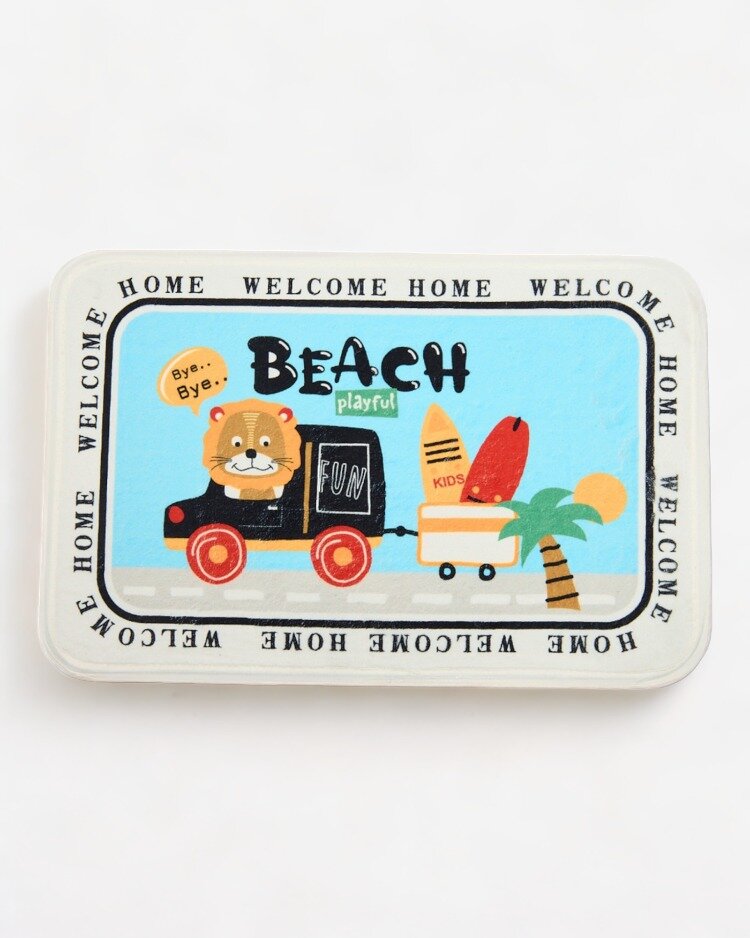- Малка цветна изтривалка за врата с къс косъм и надпис "Добре дошли у дома". Той е мек и деликатен, което го прави изключително приятен на допир. Допълнително предимство на килимчето е нехлъзгавата му долна страна.