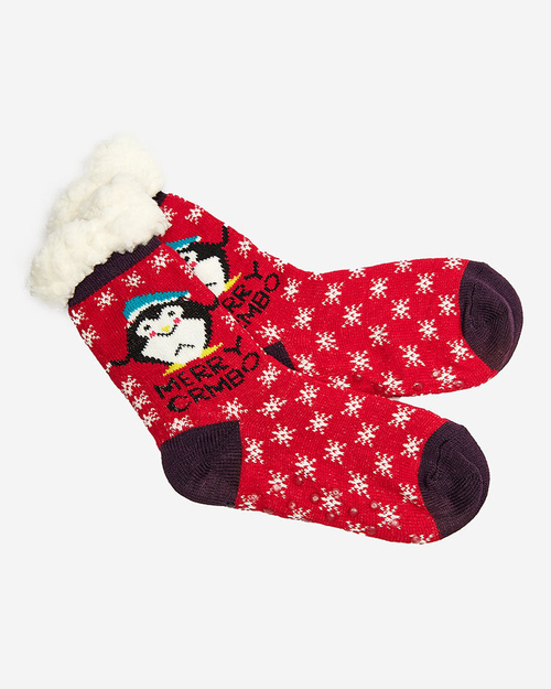 Червени дамски чорапи с коледна шарка - Бельо