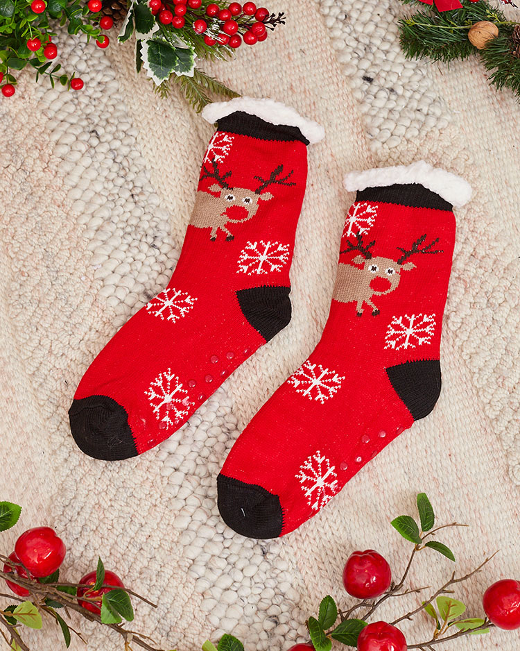 • Красиви дамски плътни чорапи с коледен десен и нехлъзгаща се долна част. Отвътре са изолирани с бяла топла овча кожа. Чорапите ще са чудесни за по-студените вечери.