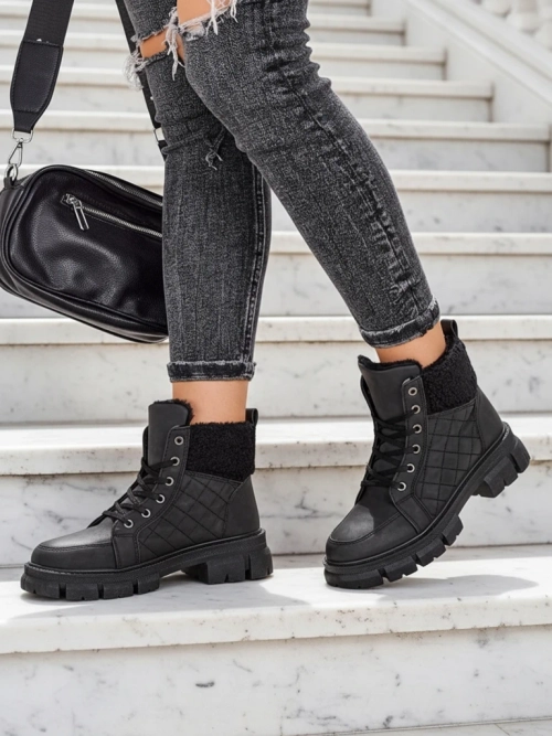 - Вечни дамски ботуши a'la trappers. Горната част с дантела е изработена от матова екологична кожа, а центърът е изолиран с мека кожа. Моделът е декориран с ватирана вложка и овча кожа. Супер допълнение към зимните ви тоалети!