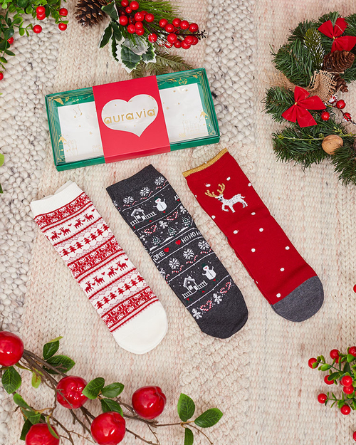 - Сладки коледни чорапи, изработени от памучен материал. Модел с очарователни мотиви - перфектната идея за подарък за Коледа!