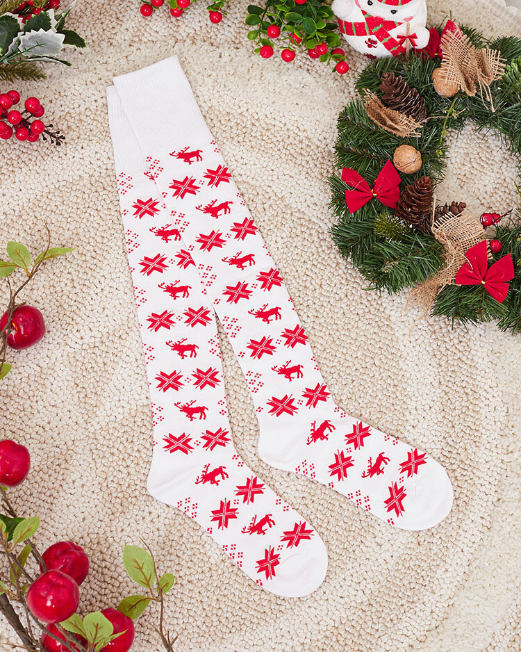Royalfashion Дамски коледни чорапи над коляното в бяло